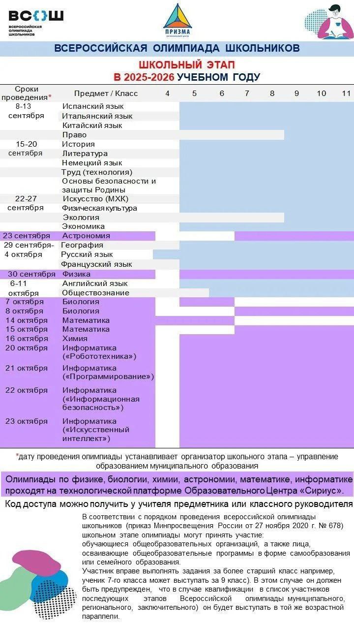 С началом учебного года стартует новый цикл всероссийской олимпиады школьников 2025/26 учебного года. Школьный этап пройдет в течение сентября и октября. Продемонстрировать свои знания смогут школьники 5–11-х классов из всех регионов Российской Федерации. Участвовать в олимпиаде по математике и русскому языку можно уже с 4-го класса.